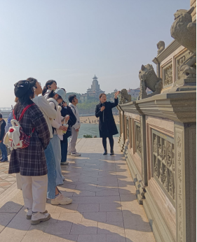 集美作为嘉庚精神的发源地,成为实践队的核心学习阵地。2月5日,在集美鳌园与陈嘉庚纪念馆,福大学子驻足集美解放纪念碑前,品读陈嘉庚先生以教育救国、带领华侨支援抗战、助力家乡建设的一生,深刻感悟“诚以待人,毅以处事”的嘉庚精神内涵。登临集美塔,队员们体验全省首家5G+AR/VR沉浸式党史学习教育展示厅,科技与红色文化的融合创新,让大家更加明晰数字技术在红色文化传播中的应用价值;塔内的南音、漆线雕等闽南非遗展陈,更让学子们体会到闽南文化与华侨文化的交融共生,感受文化传承的时代活力。